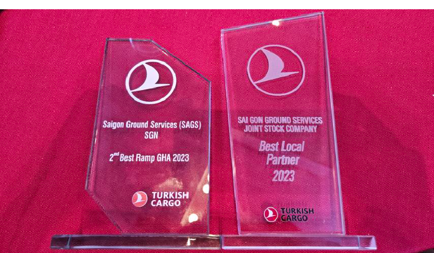 Bên cạnh đó, SAGS cũng vinh dự đạt được hạng hai Best Ramp GHA 2023, giải thưởng này nhằm tôn vinh những đóng góp xuất sắc của SAGS trong việc cung cấp dịch vụ hiệu quả, đảm bảo an toàn và đúng giờ cho các chuyến của Turkish Cargo. SAGS đã chứng minh được năng lực và sự chuyên nghiệp trong việc quản lý và vận hành dịch vụ tại sân bay, đáp ứng và vượt qua các yêu cầu khắt khe của hãng với tiêu chuẩn cao về an toàn và chất lượng dịch vụ.