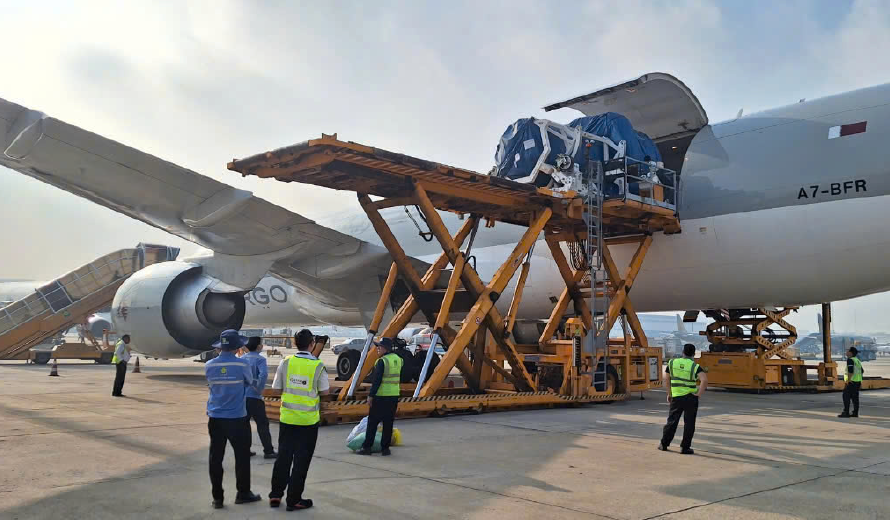 Vào sáng ngày 26/09, Công ty Cổ phần Phục vụ Mặt đất Sài Gòn (SAGS) đã hoàn thành xuất sắc công tác phục vụ chất xếp một mâm hàng đặc biệt cho Hãng hàng không Qatar Airways Cargo. Chuyến bay mang số hiệu QR8971 được vận hành bằng tàu bay B777F, khởi hành từ Cảng Hàng không Quốc tế Tân Sơn Nhất đến Doha (Qatar) vào 07:55 phút sáng. Chuyến hàng đặc biệt này bao gồm động cơ phản lực GENX Floating Engine nặng hơn 13.000 kg, được đặt trong mâm 20 ft. Đây là một nhiệm vụ đầy thách thức do tính chất kỹ thuật phức tạp và yêu cầu nghiêm ngặt về an toàn khi vận chuyển loại hàng hóa có trọng lượng lớn và cồng kềnh này.