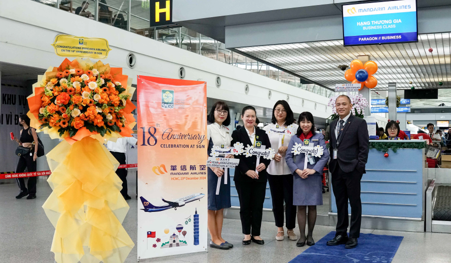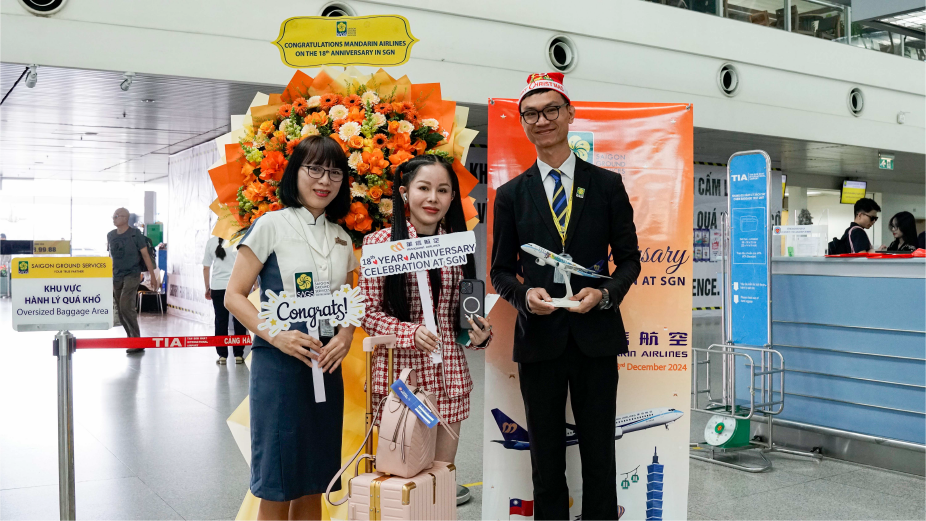 Ngày 23/12/2024 là ngày kỷ niệm hành trình 18 năm (23/12/2006 – 23/12/2024) đầy tự hào của Hãng hàng không Mandarin Airlines (AE) khai thác tại Cảng Hàng không Quốc tế Tân Sơn Nhất. Với hành trình gần hai thập kỷ gắn bó này đã có sự đồng hành của Công ty Cổ phần Phục vụ Mặt đất Sài Gòn (SAGS), cùng đội ngũ cán bộ nhân viên giàu kinh nghiệm, được đào tạo chuyên sâu và luôn tận tâm với công việc đã giúp SAGS thực hiện tốt nhất sứ mệnh của mình trong từng chuyến bay của Hãng hàng không Mandarin Airlines xuyên suốt 18 năm.