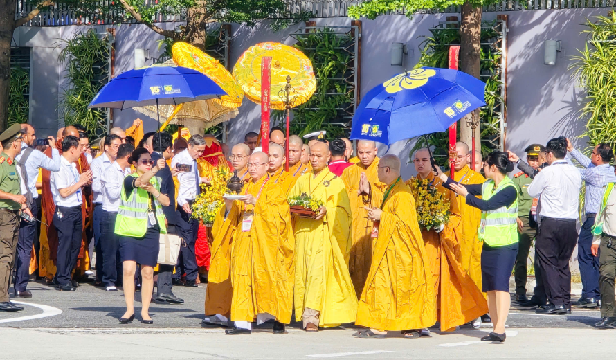 Hình 2: Nghi lễ cung rước Xá Lợi được tổ chức trang trọng với sự phối hợp của SAGS-DAD và các đơn vị chức năng thành phố.