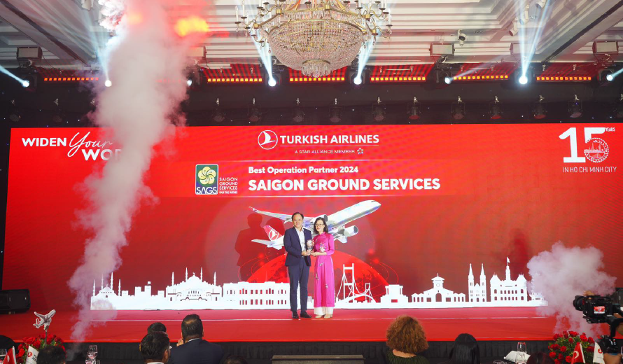 Vào ngày 20/05/2025, Công ty Cổ phần Phục vụ Mặt đất Sài Gòn (SAGS) tiếp tục khẳng định vị thế là đối tác hàng đầu trong lĩnh vực dịch vụ mặt đất khi vinh dự được Hãng hàng không Turkish Airlines trao tặng giải thưởng "Best Operation Partner 2024". Đây là sự ghi nhận xứng đáng cho những nỗ lực không ngừng của đội ngũ SAGS trong việc duy trì chất lượng dịch vụ ổn định, chuyên nghiệp và an toàn theo các tiêu chuẩn khắt khe của hãng hàng không 5 sao đến từ Thổ Nhĩ Kỳ.