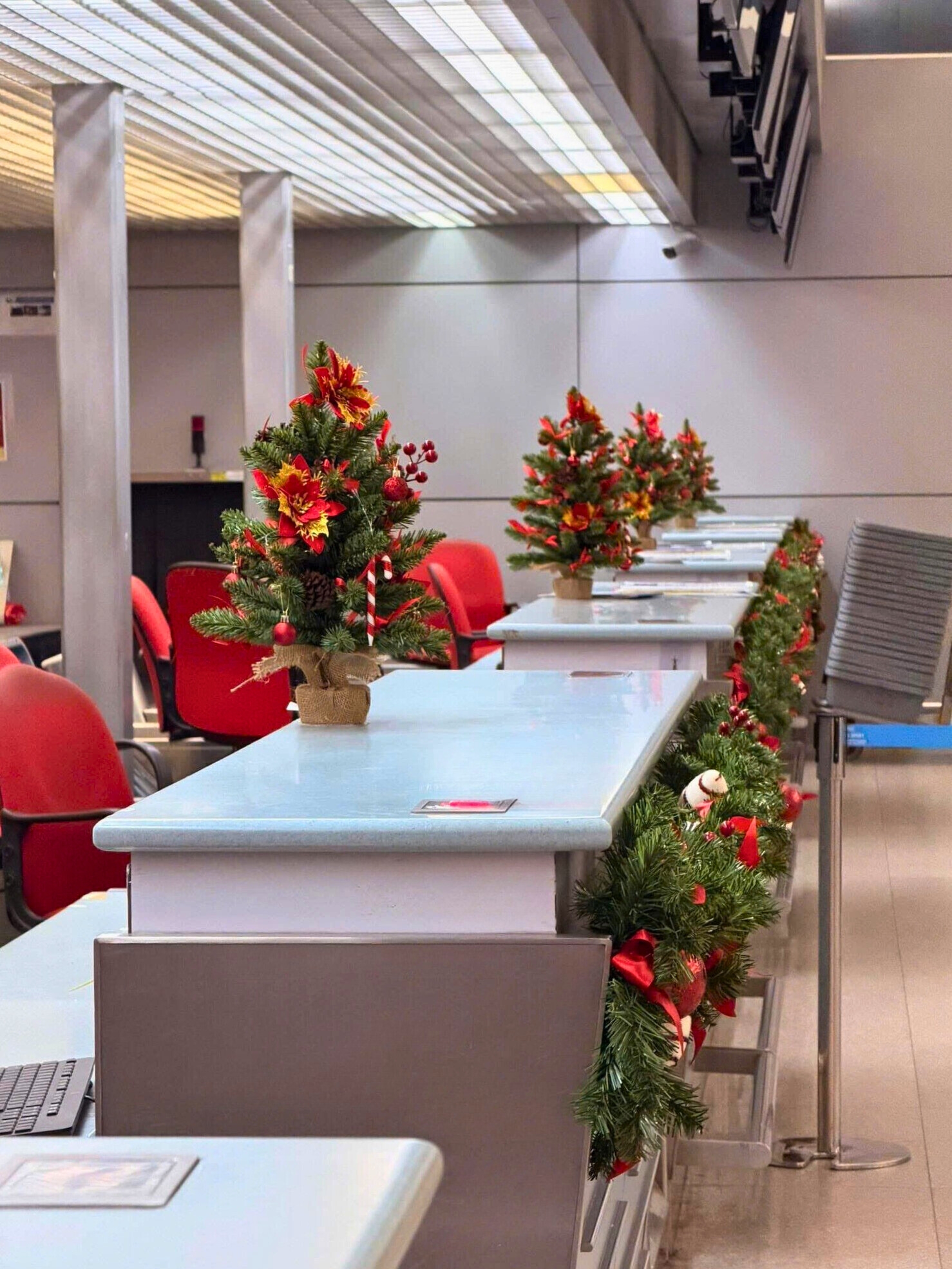 Song song với khu vực phục vụ hành khách, văn phòng làm việc của SAGS cũng được điểm trang bằng các chi tiết Noel nhẹ nhàng, tạo tinh thần hứng khởi cho đội ngũ trong giai đoạn cao điểm cuối năm, đồng thời thể hiện sự quan tâm đến môi trường làm việc nội bộ.