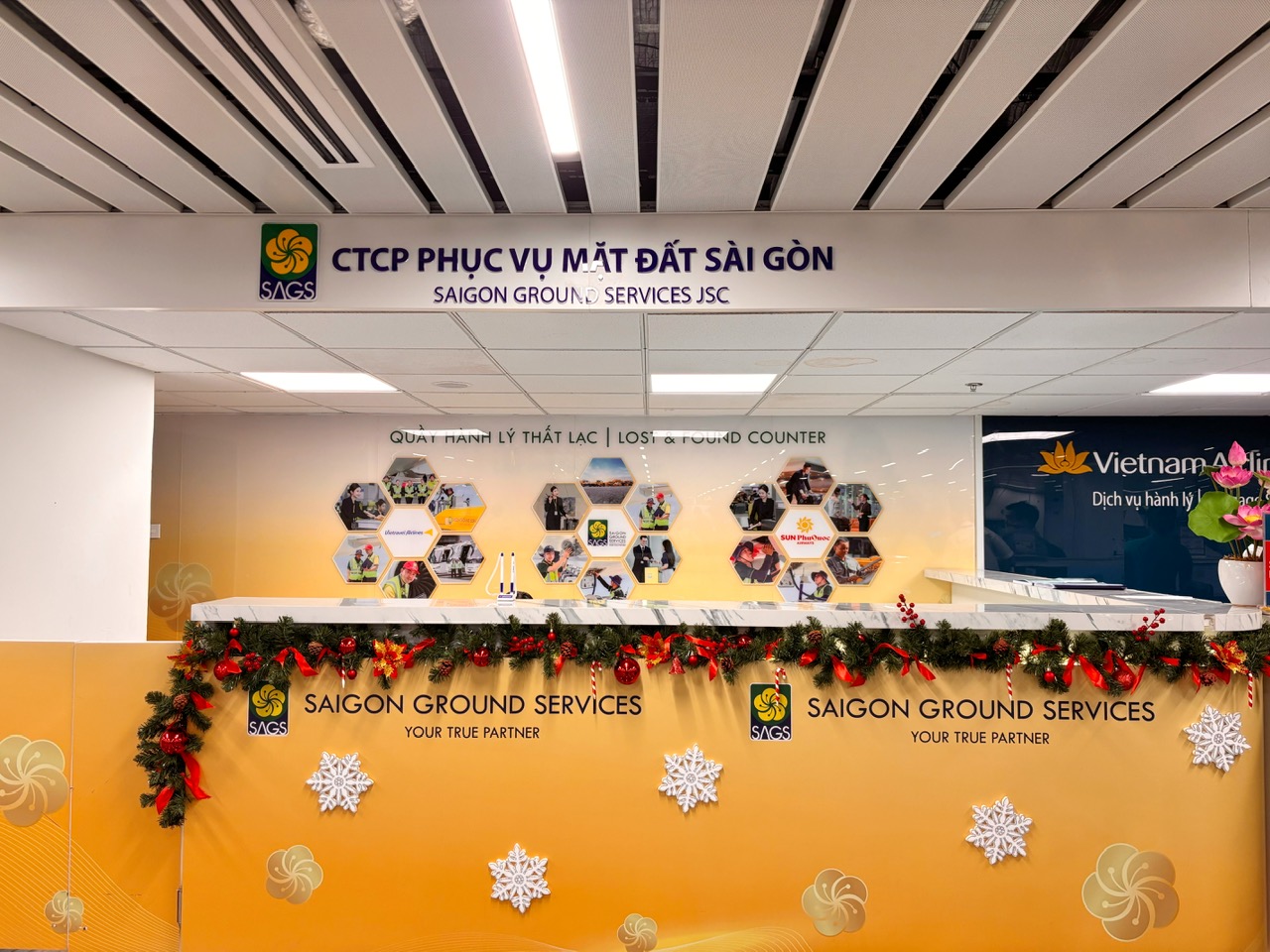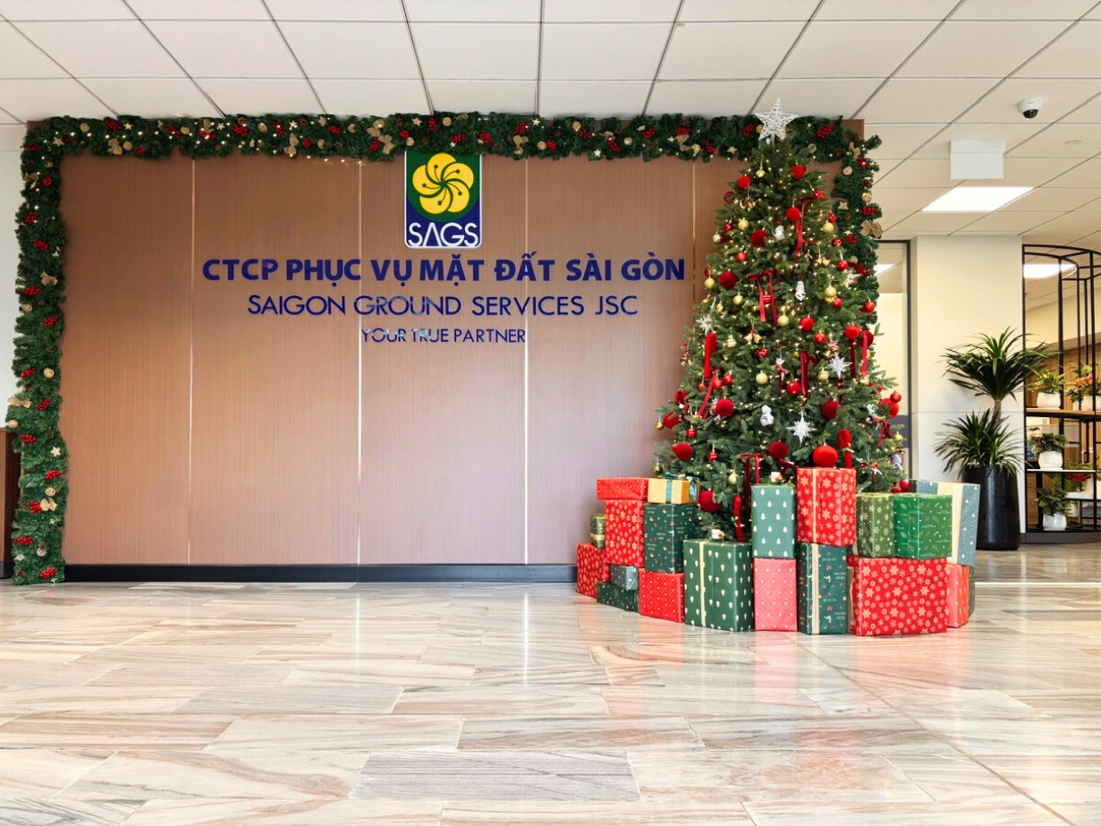 Từ đầu tháng 12, hòa chung mùa lễ hội lan tỏa khắp nơi, các quầy giao dịch của SAGS tại nhà ga quốc nội và quốc tế thuộc Cảng Hàng không Quốc tế Tân Sơn Nhất đã được điểm trang bằng sắc màu đặc trưng của dịp Giáng Sinh. Diện mạo rực rỡ giúp hành khách cảm nhận ngay tinh thần mùa lễ khi đến khu vực làm thủ tục, mang lại cảm giác ấm áp cho hành trình cuối năm.