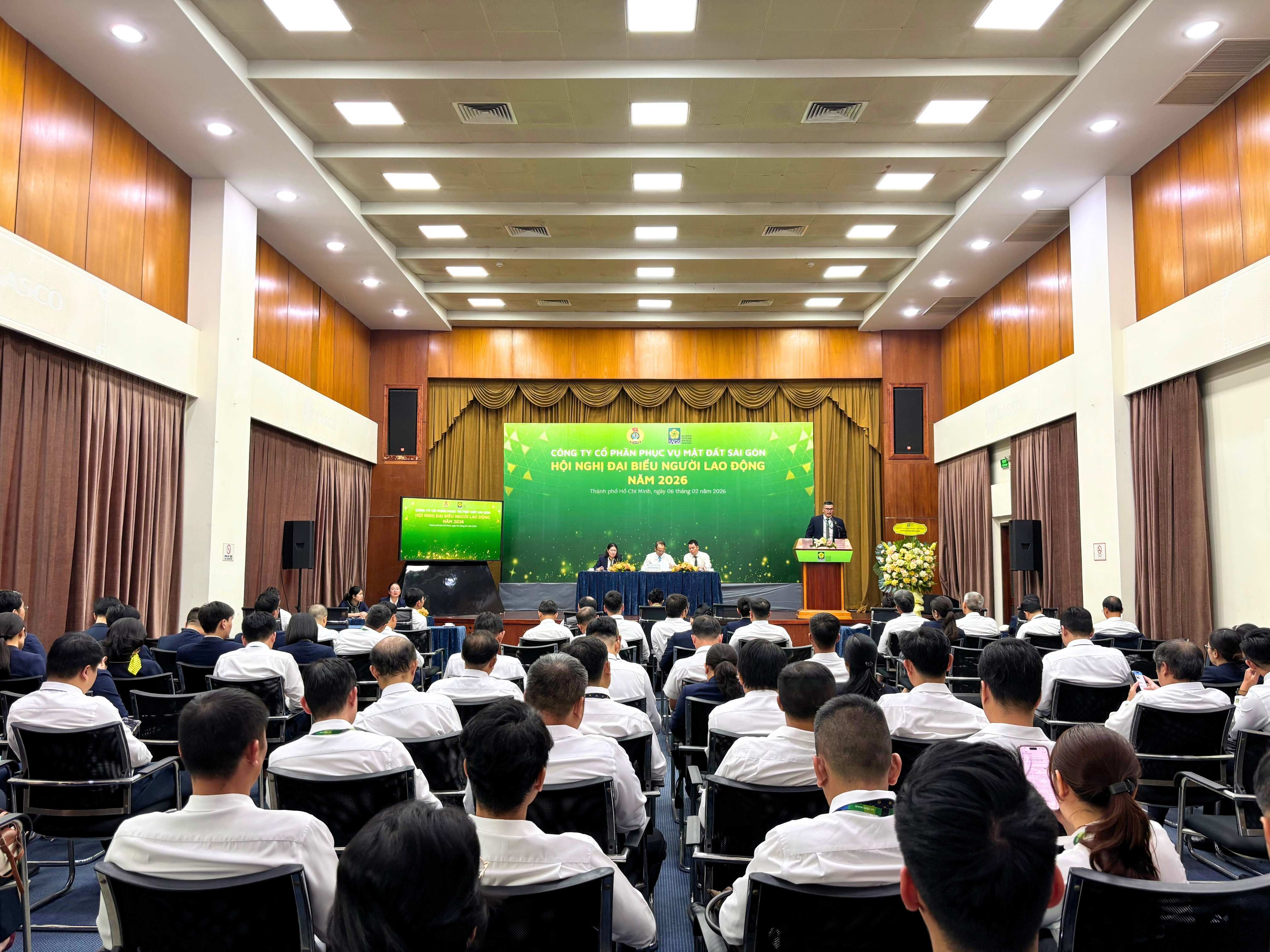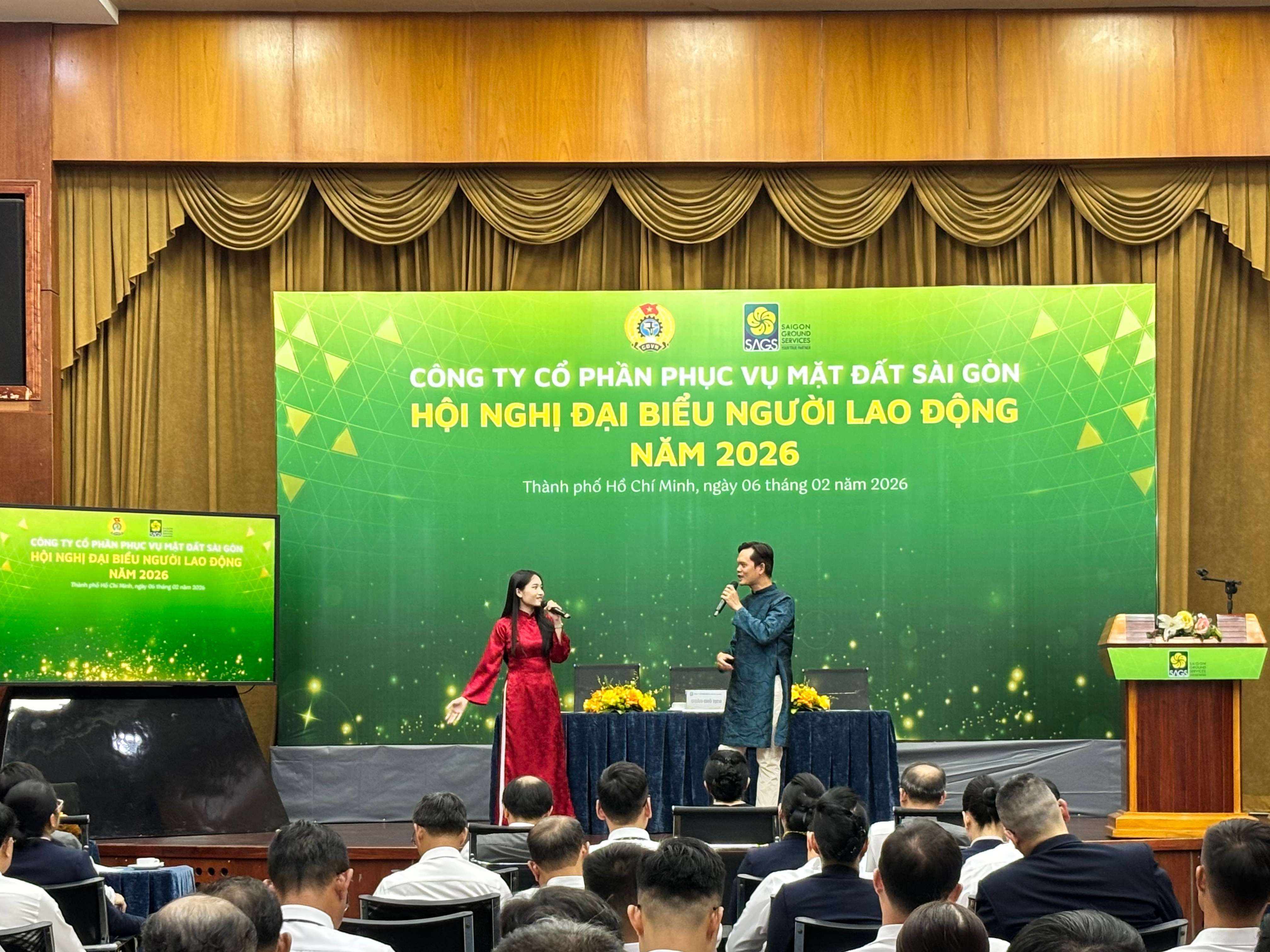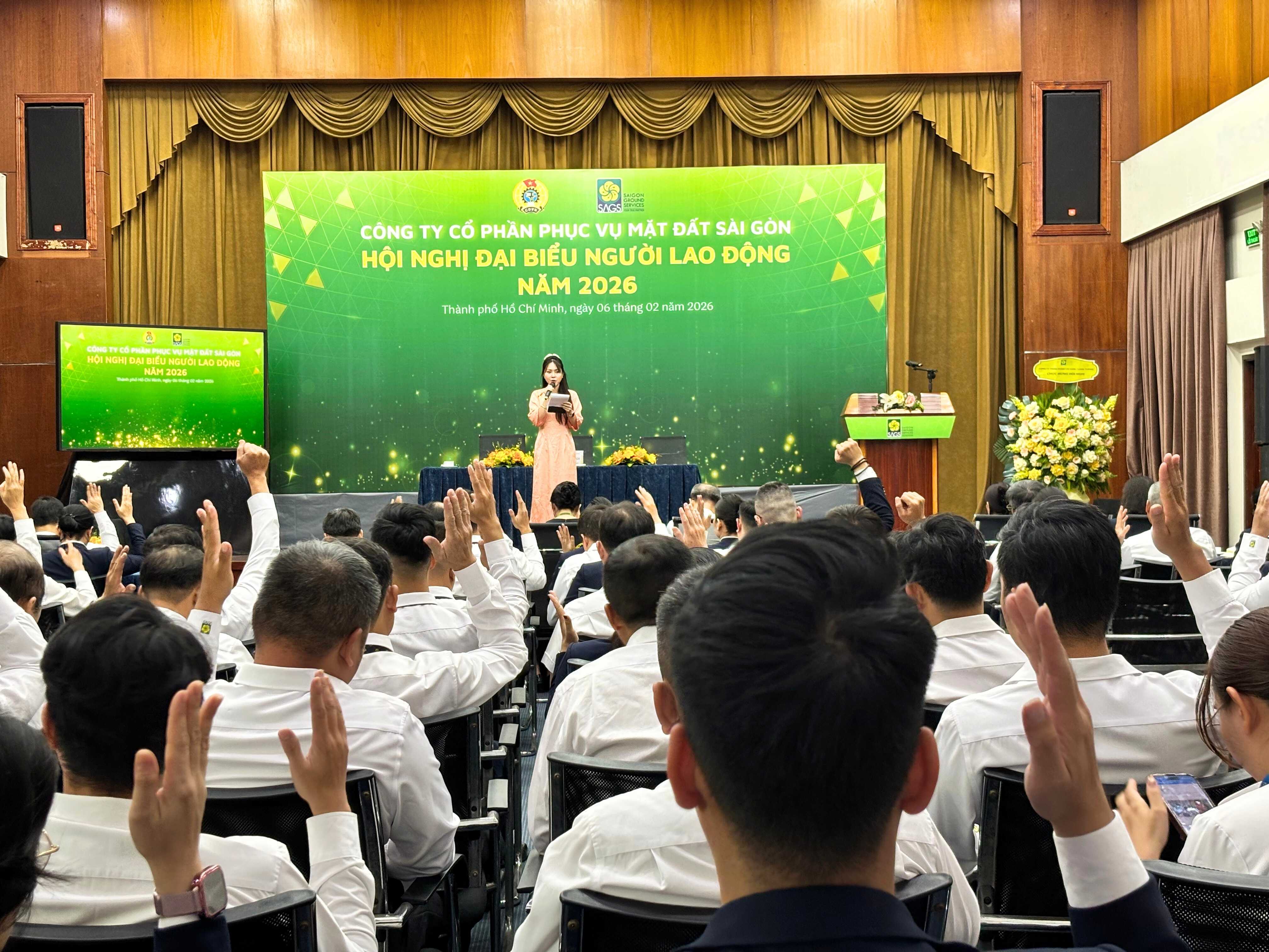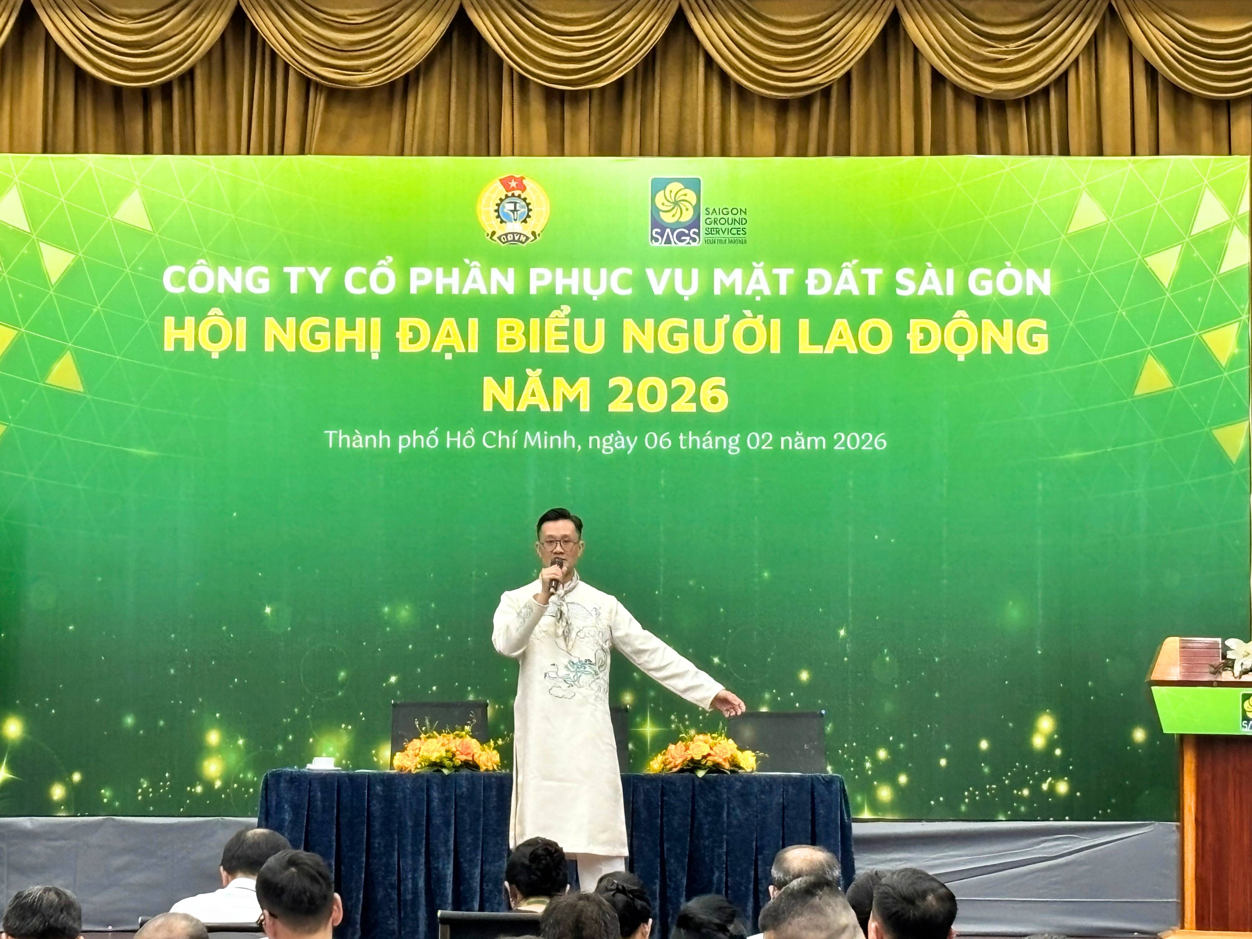 Ngày 06/02/2026, Công ty Cổ phần Phục vụ Mặt đất Sài Gòn (SAGS) đã tổ chức Hội nghị Người lao động năm 2026 với sự tham dự của Ban Điều hành và các đại biểu đại diện cho cán bộ, nhân viên – người lao động SAGS đến từ các phòng trực thuộc, CTCP Phục vụ Mặt đất Sài Gòn – Chi nhánh Đà Nẵng, CTCP Phục vụ Mặt đất Sài Gòn – Cam Ranh và Công ty TNHH Phục vụ Mặt đất Sài Gòn – Long Thành.
