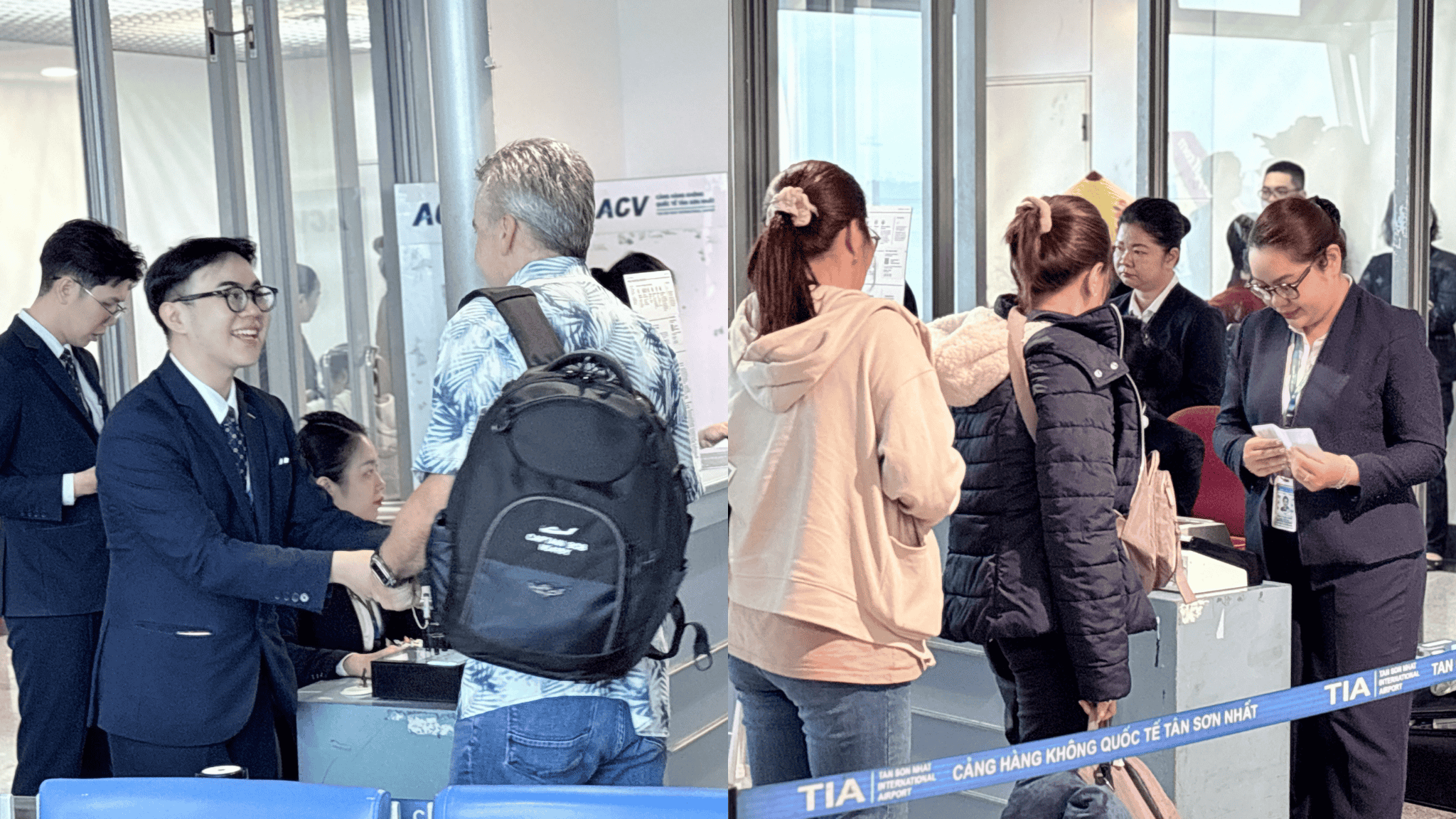 Đội ngũ SAGS phục vụ hành khách tại khu vực cửa khởi hành. Ảnh: SAGS