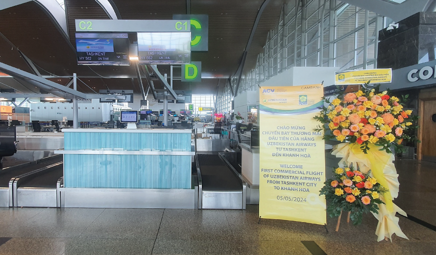 Vào sáng ngày 05 tháng 05 năm 2024, CTCP Phục vụ mặt đất Sài Gòn – Cam Ranh đã phục vụ Hãng hàng không Uzbekistan Airways (HY) từ Tashkent, thủ đô của Uzbekistan, đến Cam Ranh, Khánh Hòa, với chuyến bay mang số hiệu HY561, khai thác bằng tàu bay Airbus A321, với tần suất 02 chuyến/ tuần. Đây là bước tiến quan trọng trong việc mở rộng và phát triển của hãng hàng không Uzbekistan Airways, đồng thời tạo điều kiện thu hút du khách quốc tế từ Uzbekistan và các quốc gia Trung Á đến Khánh Hòa.