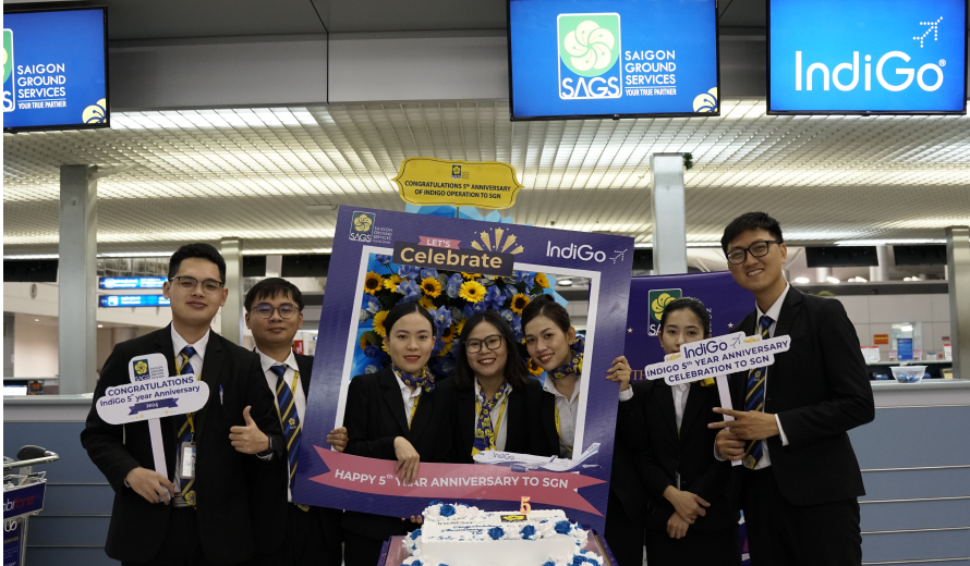 Vào ngày 16/07/2024, CTCP Phục vụ Mặt đất Sài Gòn (SAGS) phối hợp cùng Hãng hàng không IndiGo (6E) tổ chức buổi tuyên dương các nhân viên phục vụ mặt đất đã có biểu hiện nỗ lực, tận tâm trong công tác phục vụ từng chuyến bay của Hãng.