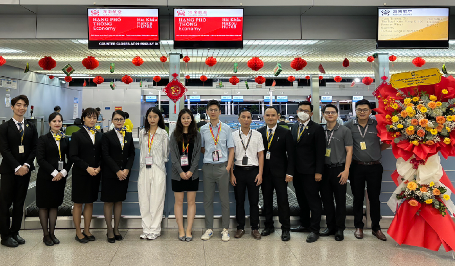 Ngày 15/01/2024, Hãng hàng không Hainan Airlines đã đánh dấu cột mốc đầu tiên khai thác đường bay mới kết nối Thành phố Hồ Chí Minh đến Hải Khẩu, Trung Quốc. Chuyến bay mang số hiệu HU768, khai thác bằng tàu bay Boeing 737-800 với tần suất 2 chuyến/ tuần.
