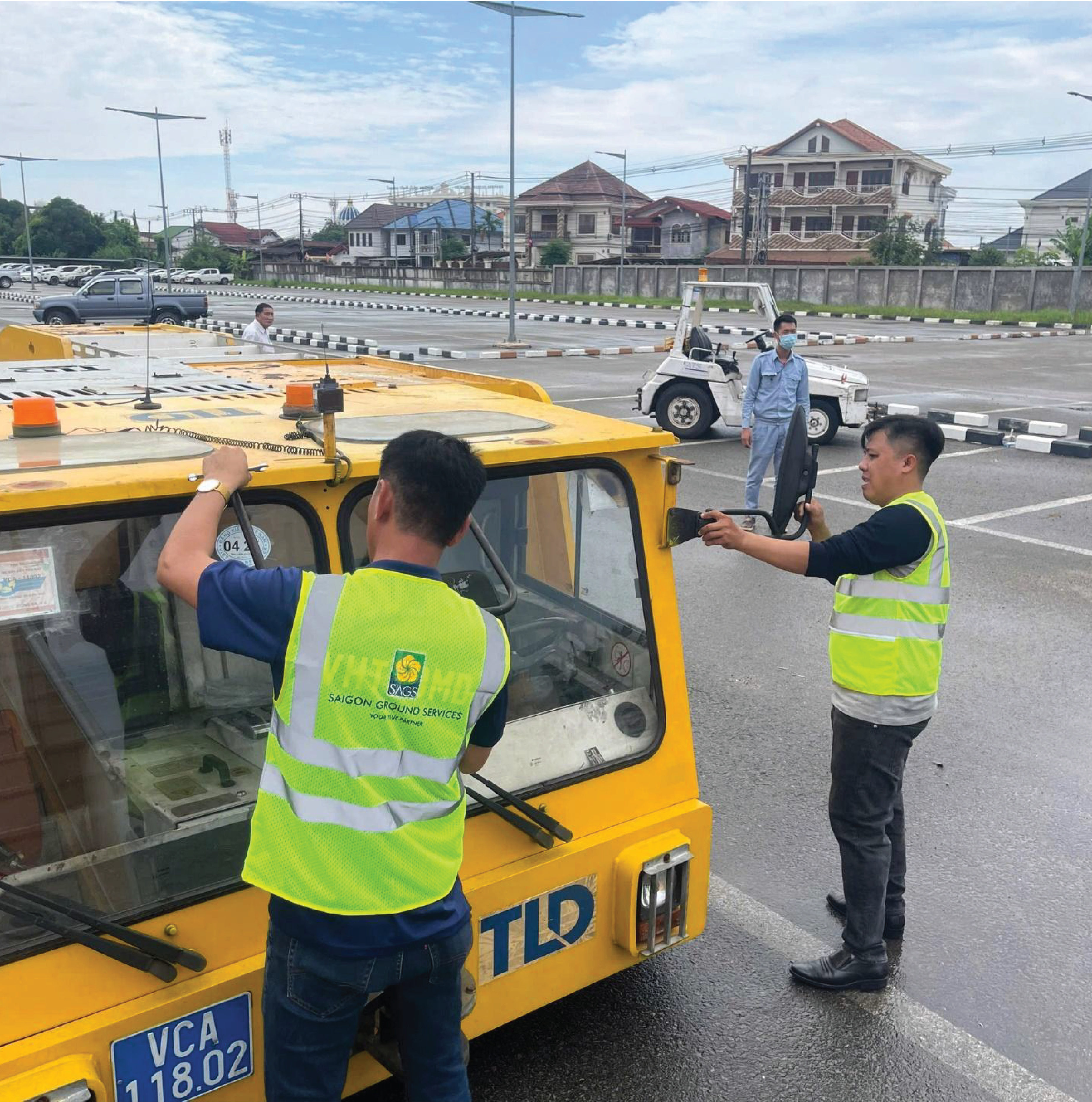 Hình 02-03: Công ty Cổ phần Phục vụ Mặt đất Sài Gòn (SAGS) kiểm tra phương tiện, trang thiết bị phục vụ chuẩn bị thực hiện bàn giao cho L-JATS (Nguồn: ACV)