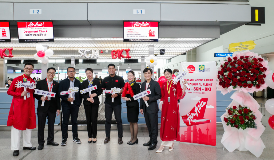 Ngày 03/12/2024, trong không khí rộn ràng đầy phấn khởi tại Cảng Hàng không Quốc tế Tân Sơn Nhất, CTCP Phục vụ mặt đất Sài Gòn (SAGS) đã hân hoan chúc mừng HHK AirAsia khai trương đường bay mới đến Thành phố Kota Kinabalu (BKI) – Malaysia với chặng bay thẳng BKI – SGN – BKI. Chuyến bay mang số hiệu AK1630/ 1631 khai thác bằng tàu bay Airbus A320, tần suất 03 chuyến/ tuần, hứa hẹn mang đến cho hành khách những trải nghiệm bay thú vị.