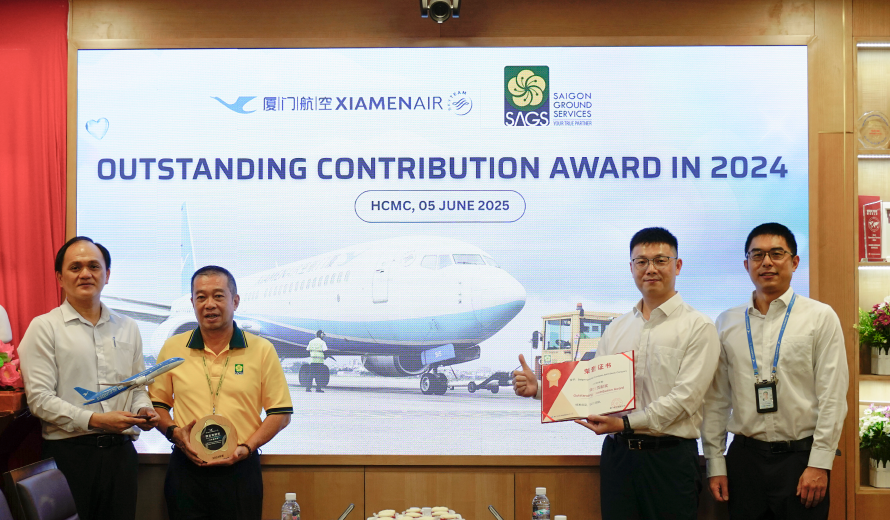 Ngày 05/06/2025, Công ty Cổ phần Phục vụ Mặt đất Sài Gòn (SAGS) vinh dự đón nhận giải thưởng "Outstanding Contribution Award 2024" (Giải thưởng Đóng góp Xuất sắc) do Hãng hàng không Xiamen Airlines trao tặng. Đây là lần đầu tiên giải thưởng này được Xiamen Airlines đề xuất, nhằm ghi nhận sự đóng góp nổi bật của các đối tác quốc tế trong công tác phục vụ mặt đất.