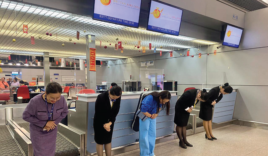 Một số hình ảnh chào đón và phục vụ chuyến bay của Bhutan Airlines ngày 25/01/2023. (Ảnh: SAGS)