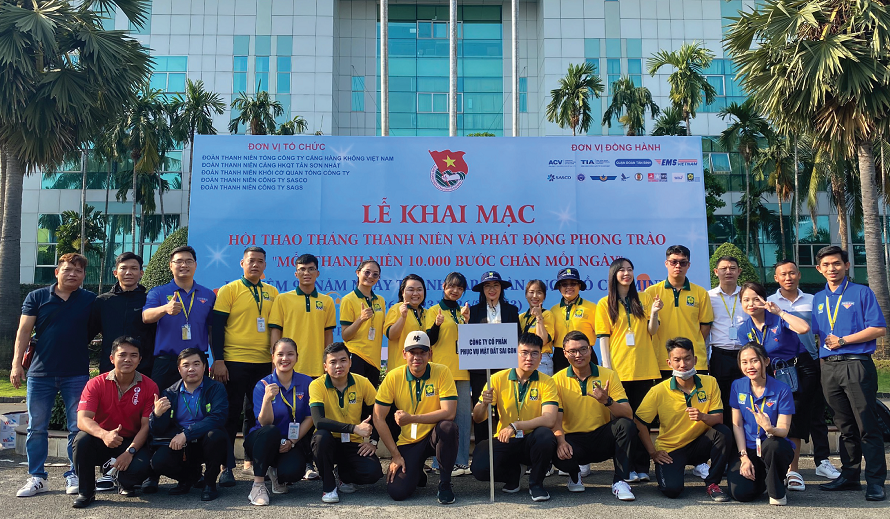 Sáng ngày 17/03/2023, tập thể đoàn viên thanh niên SAGS đã có mặt tại Tòa Nhà Công ty SASCO tham dự sự kiện khai mạc Hội thao Tháng Thanh niên do Đoàn Thanh niên ACV tổ chức, đồng thời phát động phong trào “Mỗi thanh niên 10.000 bước chân mỗi ngày”. Lễ khai mạc vinh dự có sự góp mặt của các lãnh đạo đơn vị cùng với sự tham gia của hơn 100 vận động viên là đoàn viên thanh niên đến từ các đơn vị, cơ sở trực thuộc Cảng HKQT Tân Sơn Nhất.