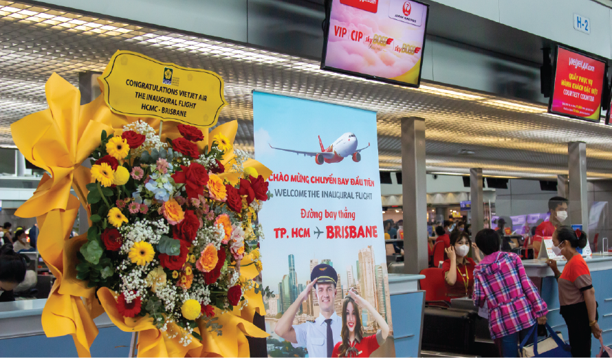 Tiếp nối Lịch bay mua Hè 2023 sôi động cùng với nhu cầu tăng tần suất và kết nối đường bay mới đến Úc, sáng ngày 16/06/2023, HHK Vietjet Air chính thức khai trương đường bay Thành phố Hồ Chí Minh – Brisbane, Bang Queensland (SGN-BNE) với tần suất 02 chuyến/ tuần bằng tàu bay Airbus A330. Hoạt động này góp phần thúc đẩy giao thương giữa Việt Nam và Úc.