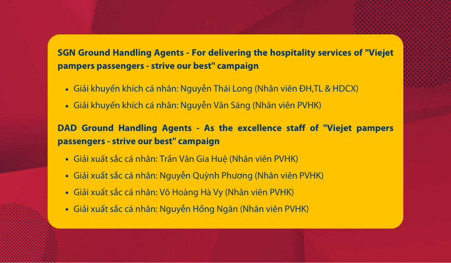 Một số giải thưởng SAGS đạt được xuyên suốt hoạt động: “Vietjet yêu chiều - Thi đua hè thật siêu”