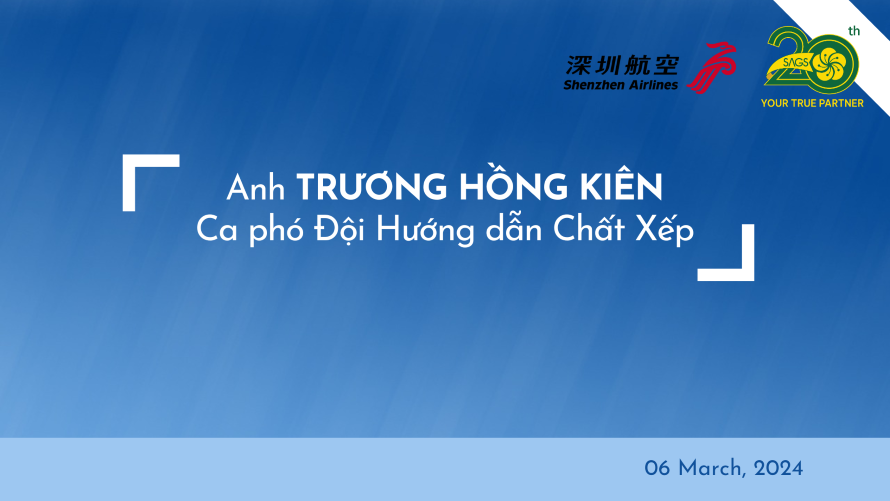 Ngày 04/03/2024, trên chuyến bay ZH8018, anh Trương Hồng Kiên - Ca phó Đội Hướng dẫn Chất Xếp đã phát hiện ra hàng hoá có số AWB không đúng với thông tin trong Cargo Manifest của chuyến bay. Tinh thần tỉ mỉ, tận tâm, trách nhiệm là điều kiện tiên quyết trong công tác phục vụ chuyến bay, Ban Lãnh đạo SAGS đã chia sẻ niềm tự hào về đội ngũ nhân viên chuyên nghiệp và đưa ra phương án tiếp cận xử lý tình huống nhanh chóng cho các tình huống xảy ra trong quá trình phục vụ.